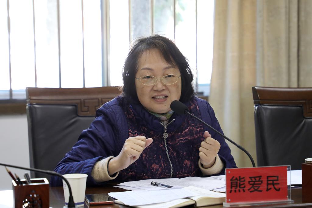 熊爱民顾问充分肯定了学校科研工作的成绩,指出要加大投入力度,在应用型研究上有所作为。她还从规范性的角度,对科研制度文件的制定与修改提出了具体建议。
