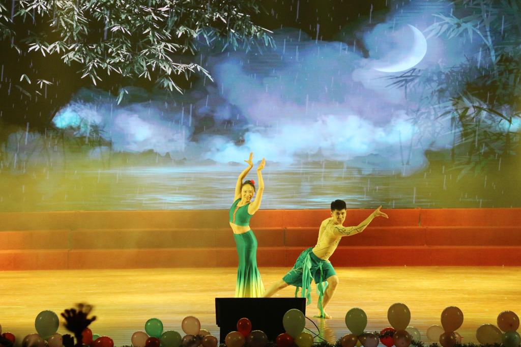 教育学院合唱团合唱的《天耀中华》拉开晚会帷幕。歌曲《贝加尔湖畔》、爵士舞《La Vie En Rose》、绘本故事《我的幸运一天》、舞蹈《儿时》、朗诵《我们都是战士》、舞蹈《傣塑》、歌曲《向往》、抗洪舞蹈《青春在那25公里的大坝上闪光》、维吾尔族舞《亚丽古娜》等节目精彩纷呈。教育学院全体教师带来的舞蹈《可爱摆》将晚会推向了高潮。