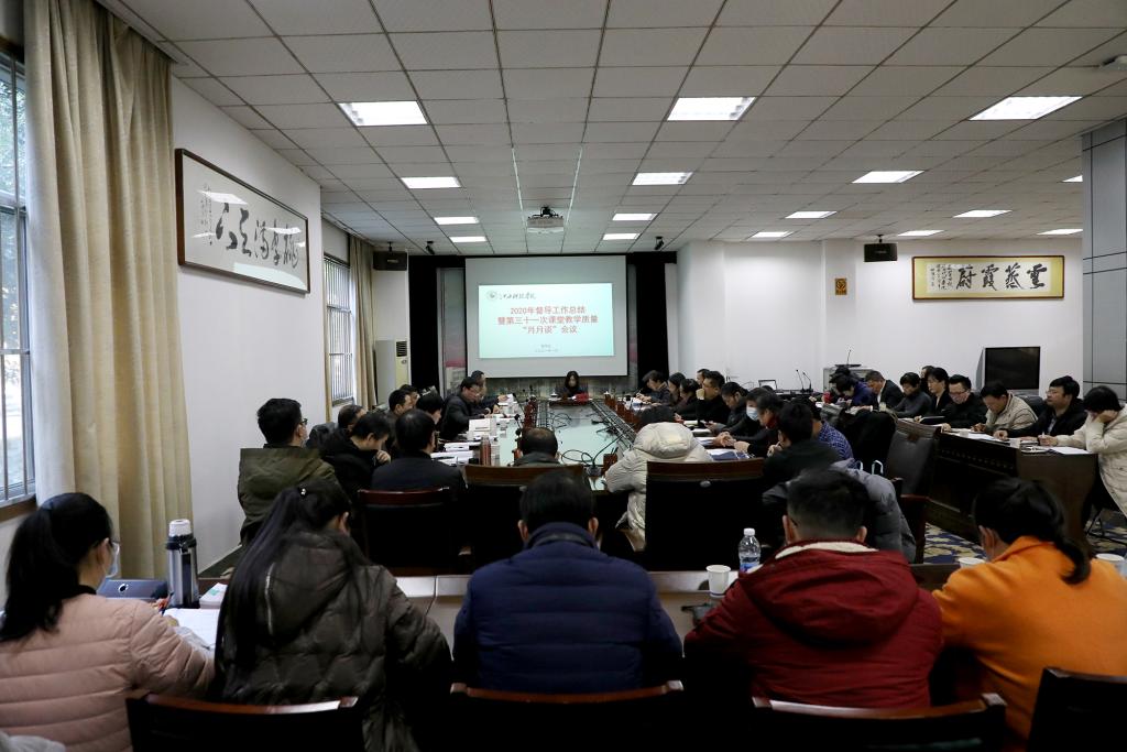 张海涛校长在讲话中对2020年的教学督导工作表示肯定,对督导员的辛勤付出和各学院、各单位、各部门的大力配合表示感谢。她指出,督导处有条不紊地开展“月月谈”工作并取得了很好的成效;各学院和各教学部进一步加强了对教学质量,特别是对课堂教学规范性的管理。校内外督导员在督导岗位上以高度的责任心做了扎扎实实的非常严谨细致的工作,共同促进学校教育教学质量和教师教学水平的提高。整个督导工作在不断往前发展和进步,督导员在督导工作中既督又导、注重方式方法,真正通过督导进一步提高教学课堂活跃度。