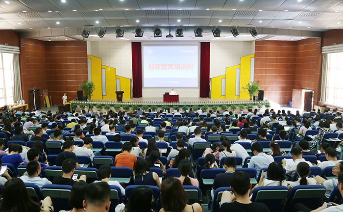 根副书记和胡剑锋、黄辉玲、周万华、万哨凯、张海涛副校长出席。各部门负责人、各教学单位负责人、专任教师、创新导师等参加培训。