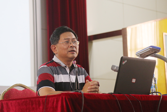 首场培训讲座由中国音乐文学学会常务理事、江西省宗教文化交流协会会长、江西省统战部原副部长、江西省宗教局原局长谢秀琦主讲《中华传统文化精髓之我见》。谢秀琦通过丰富的案例,引经据典地向大家介绍了中国文化的相关理论知识。他围绕 “什么是文化”、“什么是中华传统文化”、“什么是中华统文化的精髓”、“如何弘扬中华优秀传统文化”四个问题展开详细的介绍,为在座的教师员工带了一场文化盛宴。
