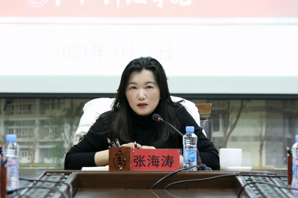 会上,张海涛校长进一步明确了“十四五”期间学校“应用型好大学”的远景目标及打造“实力江科、活力江科、魅力江科”的发展愿景。就如何贯彻落实“十四五”规划,她提出,一要全面深化应用型人才培养模式改革。加强产业学院和行业学院建设,重点打造双师型队伍,加强应用研究,着力探索应用型大学江科模式,形成江科特色,打造江科品牌。二要加强学科建设和科学研究。要突出应用型研究,充实协同中心、区域发展研究院、名山文化研究所和习研中心四个研究机构队伍,加大平台建设力度,积极举办学术讲座。三要全面加强师资队伍建设。大力培养引进高层次人才,着力培养双师型教师;大力加强师德师风建设,制定班主任(辅导员)管理办法;深化绩效管理改革,建立薪酬动态增长机制;积极开展暖心活动,对青年教师及时予以人文关怀。四要全面加强学生思想引领和素质教育。加强政治建设,提高学生思想素质;要畅通诉求渠道,切实解决学生诉求;深化“五爱”教育,特别是“爱校”“荣校”教育,培养学生正能量,提升精气神。五要积极推进劳动教育。把劳动教育纳入到人才培养全过程,推进劳动教育与思想政治教育、专业教育、创新创业教育和志愿服务相结合,培养学生的劳动习惯和卫生习惯。六要大力加强宣传教育工作。注重正面宣传和对学校重点工作的宣传,整合各方宣传渠道,培养一支专兼职相结合的宣传队伍,着力提高宣传的时效性。七要加强活力江科建设。要积极开展教学活力、创新创业活力、运动活力和文化活力建设。要长期开展教职工的健康锻炼日活动,大力组织开展学生课外活动,打造江科特色运动项目。八要加强国际交流与对外合作。加大外教引进力度,扩大留学生规模;开拓海外课堂基地,深化英语课教学改革,着力提升中外合作办学水平。九要加强现代化、智能化、信息化校园建设,着力打造美丽校园、智慧校园、节约校园和平安校园。