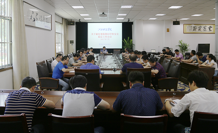 江科网讯(记者 李倩)为贯彻落实省教育厅有关文件精神,切实做好当前和暑假期间的学校安全稳定工作,有效防范各类安全事故,7月4日上午,周万华副校长在行政楼北一楼会议室主持召开暑假期间学校安全稳定工作会议。