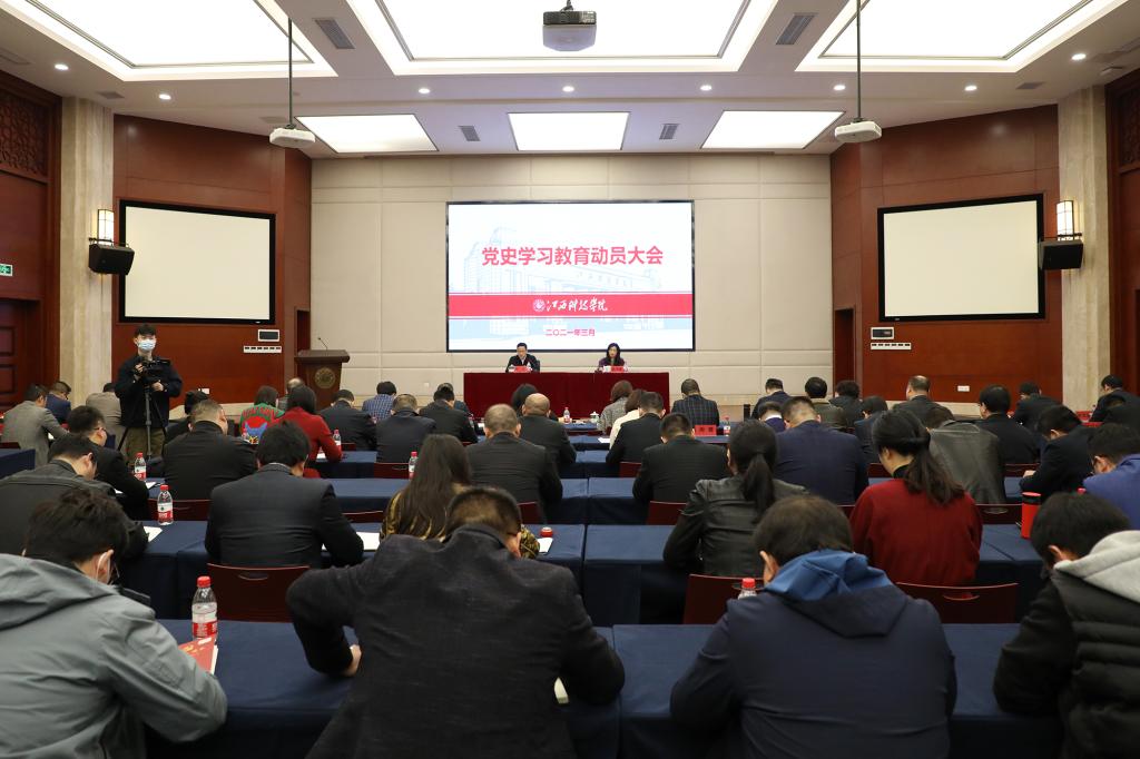 江科网讯(记者 何强江)3月15日上午,江西科技学院在行政南一楼第一会议室召开党史学习教育动员大会,深入学习贯彻习近平总书记在党史学习教育动员大会上的重要讲话精神,贯彻落实党中央、教育部党组部署和省委、省教育工委有关要求,对全校开展党史学习教育进行动员部署,激励党员师生从党的百年伟大奋斗历程中汲取奋进力量,以昂扬姿态开启学校“十四五”发展新征程。校党委书记邓弘作动员部署讲话。校长张海涛主持会议。
