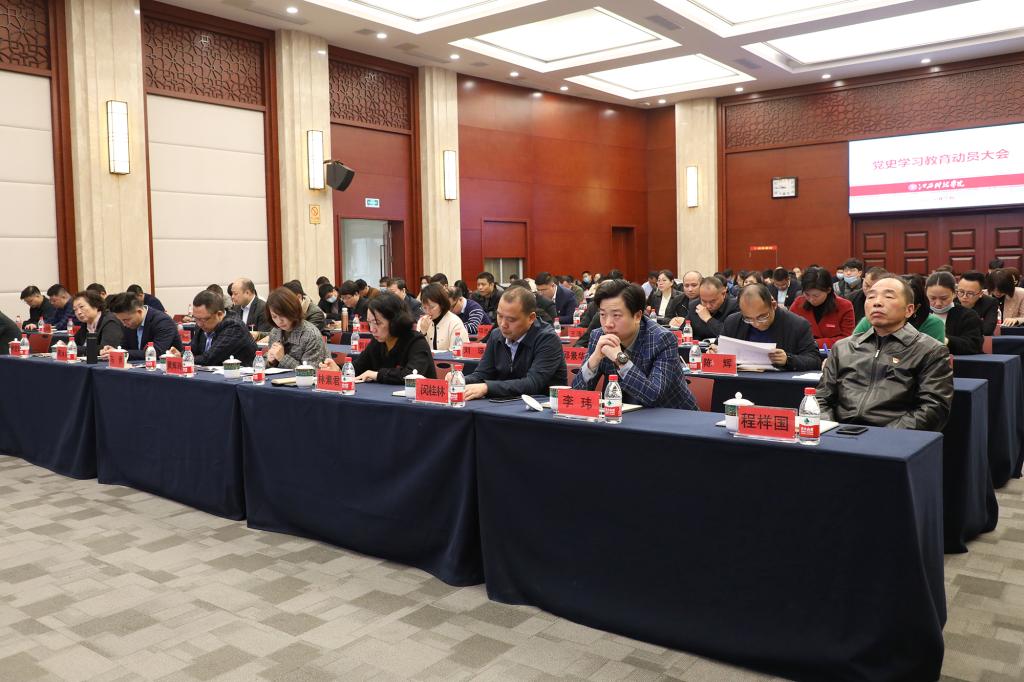 张海涛校长在主持讲话中,传达了省委教育工委、省教育厅党史学习教育动员大会精神。就扎实开展我校党史学习教育,她提出三点要求:一是将党史学习教育同自身政治素质提高结合起来。要持续强化理论武装、切实抓好思想引领,学深悟透,不断增强“四个意识”、坚定“四个自信”做到“两个维护”,真正做到学史明理、学史增信、学史崇德、学史力行,真正深刻理解“中国共产党为什么能”、“马克思主义为什么行”、“社会主义为什么好”,感党恩、听党话、跟党走。二是将党史学习教育同思政课教学结合起来。要切实做好习近平总书记在党史学习教育动员大会上的重要讲话精神进课堂、进教材、进头脑,把鲜活丰富的党史内容融入课堂教学和社会实践,因校制宜打造思政精品课,着力形成研究成果,实践成果和育人成果。三是将党史学习教育同立德树人的使命结合起来。要以学校“十四五”事业开局起步为契机,系统谋划、统筹做好当前各项工作,实实在在为师生办实事。切实推动党史学习教育入脑入心、走深走实、出新出彩,把学习成效贯通到实际工作当中,转化为干事创业的精气神,不断开创学校事业发展新局面。