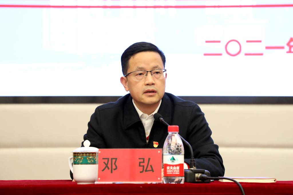 邓弘书记在讲话中从为什么学、学什么、学习要达到什么目的、如何学等四个方面,明确党史学习教育的重要意义、重点任务和目标要求。他强调,今年是中国共产党建党100周年,站在“两个一百年”奋斗目标历史交汇点上,在全党集中开展党史学习教育,是牢记初心使命、推进中华民族伟大复兴历史伟业的必然要求,是坚定信仰信念、在新时代坚持和发展中国特色社会主义的必然要求,是推进党的自我革命、永葆党的生机活力的必然要求。对于深入学习贯彻习近平新时代中国特色社会主义思想,从党的百年伟大奋斗历程中汲取继续前进的智慧和力量,激励全党全国各族人民满怀信心迈进全面建设社会主义现代化国家新征程,具有极其重要的现实意义和历史意义。围绕贯彻落实习近平总书记重要讲话精神,聚焦学校发展实际高标准、高质量开展好党史学习教育,他提出三点要求。一是提高政治站位,迅速把思想和行动统一到党中央决策部署上来;二是立足实际、守正创新,增强学习教育的针对性和实效性;三是加强宣传引导,保证正确方向,营造浓厚的学习氛围。