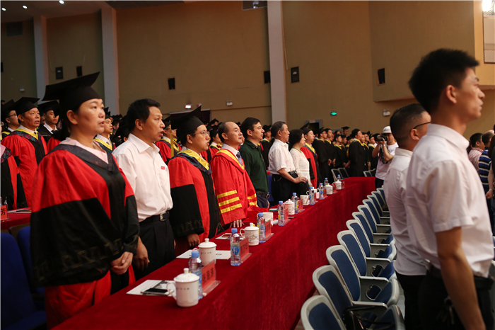 江科网讯(记者 李倩)我校2017届本科生毕业典礼暨学位授予仪式于7月1日在蓝海大剧场隆重举行。于果董事长、程样国书记、王海校长、肖亻毛根副书记和胡剑锋、林素君、周万华、万哨凯、张海涛副校长及校学位委员会全体委员出席。参加仪式的有各部门、单位代表,汽车工程学院、机械工程学院、信息工程学院和土木工程学院领导、教师代表、毕业班班主任,毕业生家长代表和四个学院的2017届统招本科毕业生。仪式由程样国主持。