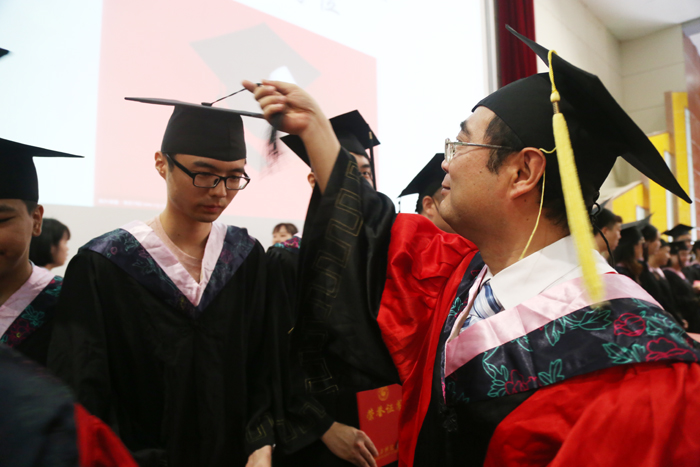 管理学院院长左振华及学院学位委员会委员们出席了该院的仪式。仪式由管理学院副院长王光明主持。教学副院长曾新锋宣读了《关于授予江西科技学院管理学院2017届本科生学士学位的决定》和《关于表彰江西科技学院管理学院2017届“优秀毕业生”的决定》。随后,学位委员们为获奖的优秀毕业生颁奖、授予学位并为所有毕业生一一拨正流苏。仪式现场还播放了精美的毕业短片,左振华为毕业典礼致辞,典礼在全体参会人员合唱《歌唱祖国》中落下帷幕。