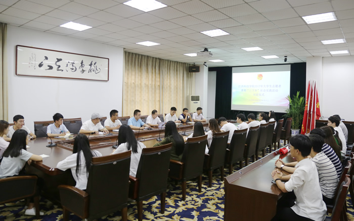 江科网讯(实习记者 何强江)6月28日下午,我校2017年大学生志愿者暑期“三下乡”社会实践活动出征仪式在行政楼北一楼会议室举行。党委委员、副校长万哨凯出席。校红色新青年服务队、V爱服务团、守望者公益实践服务团、星火传承服务队等4个队的指导老师、部分志愿者代表参加了仪式。仪式由校团委书记于海明主持。