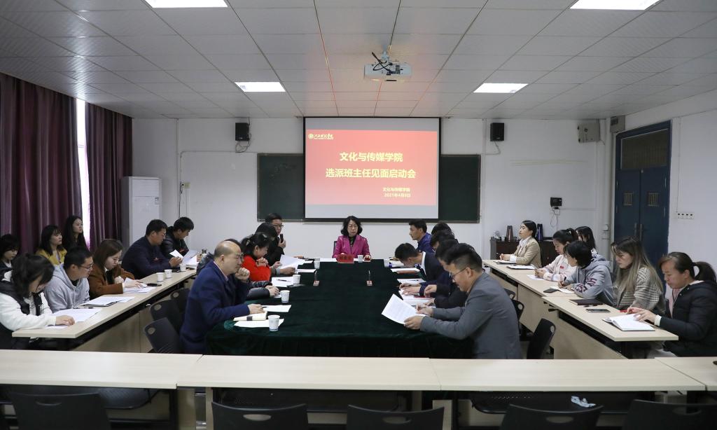 江科网讯(记者 何强江 通讯员 朱美霞 李红英)4月8日中午,文化与传媒学院在J10-305会议室举行选派班主任见面会。林素君副校长、选派班主任及学院负责人、全体辅导员参加会议。会议由该学院院长贾翔羽主持。