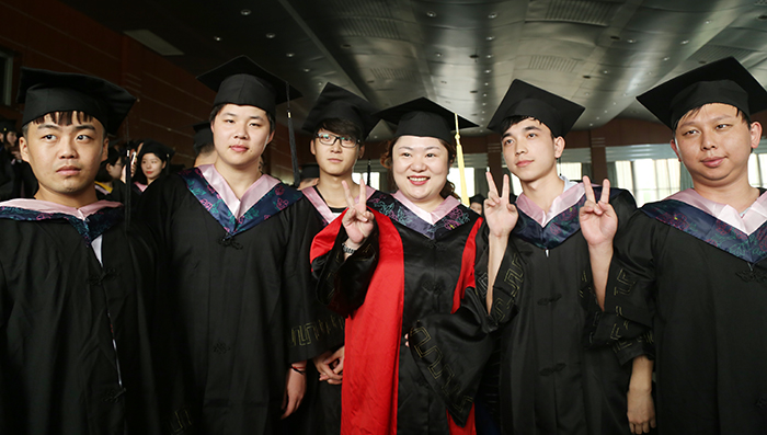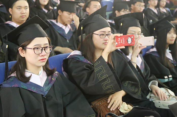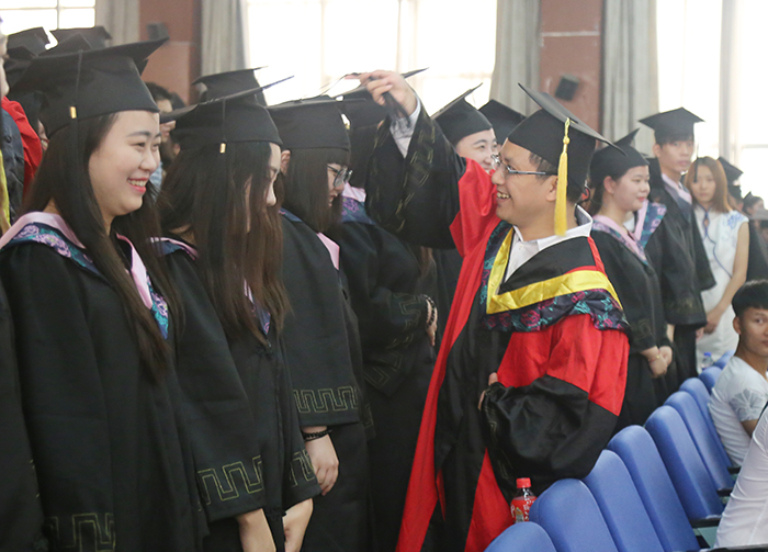 仪式上,胡剑锋和学位委员为毕业生授予学士学位。