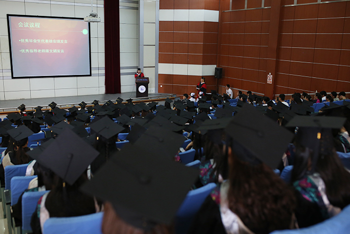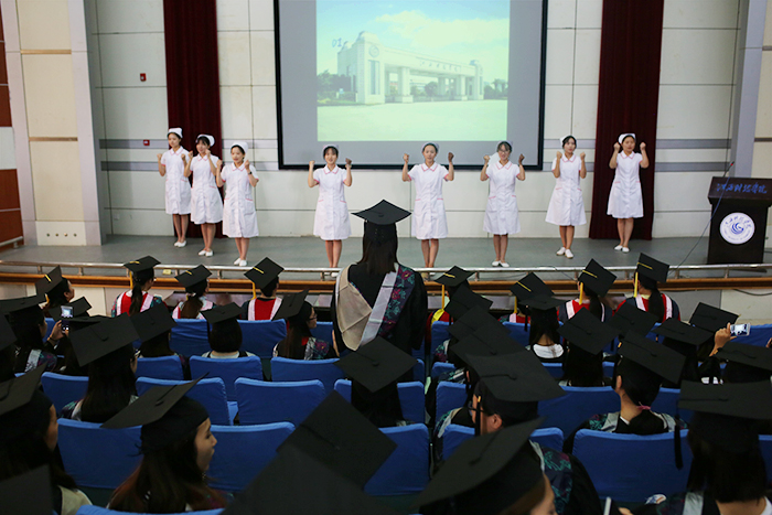 毕业生代表在发言中表达了自己对四年大学生活的感慨、对老师、谆谆教诲的感谢和对未来生活的期待。教师代表席文娟在发言中表达了对毕业生的不舍和祝福。王亚宁在讲话中对毕业生们寄予了无限希望,希望他们不论何时何地都要秉持“健康所系,生命相托”的院训。刘欢祝福毕业生有一个美好的前程,希望他们能历尽沧桑之后,内心依然坚强,面朝大海,春暖花开!