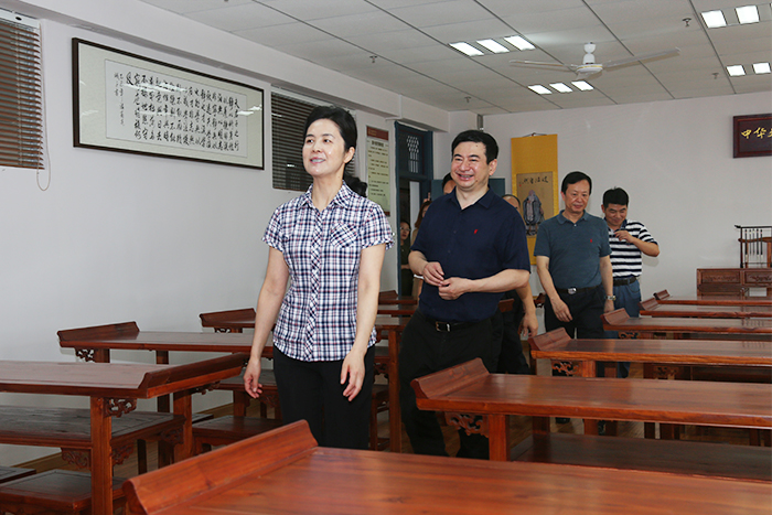 在参观到学校素质体验中心和艺术教育中心时,谢茹一行不时驻足询问,对学校丰富的活动课场馆和多彩的活动课表现出了浓厚兴趣,对学校在学生综合素质培养、科学的课程体系设置以及国学文化的传承等方面的建设成果给予了高度评价。