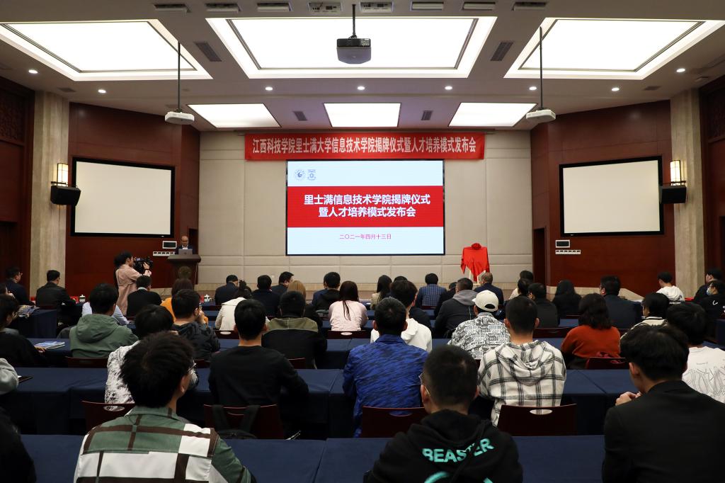 江科网讯(记者 陈佩璇)4月13日下午,江西科技学院里士满信息技术学院揭牌仪式暨中英双学位人才培养模式发布会在行政南楼第一会议室举行。校长张海涛,副校长马勇、李玮出席会议。校(党)办、教务处、招就处、学工处、宣传部负责人,里士满信息技术学院理事会成员,家长及学生代表参加会议。会议由信息工程学院院长王涛涛主持。