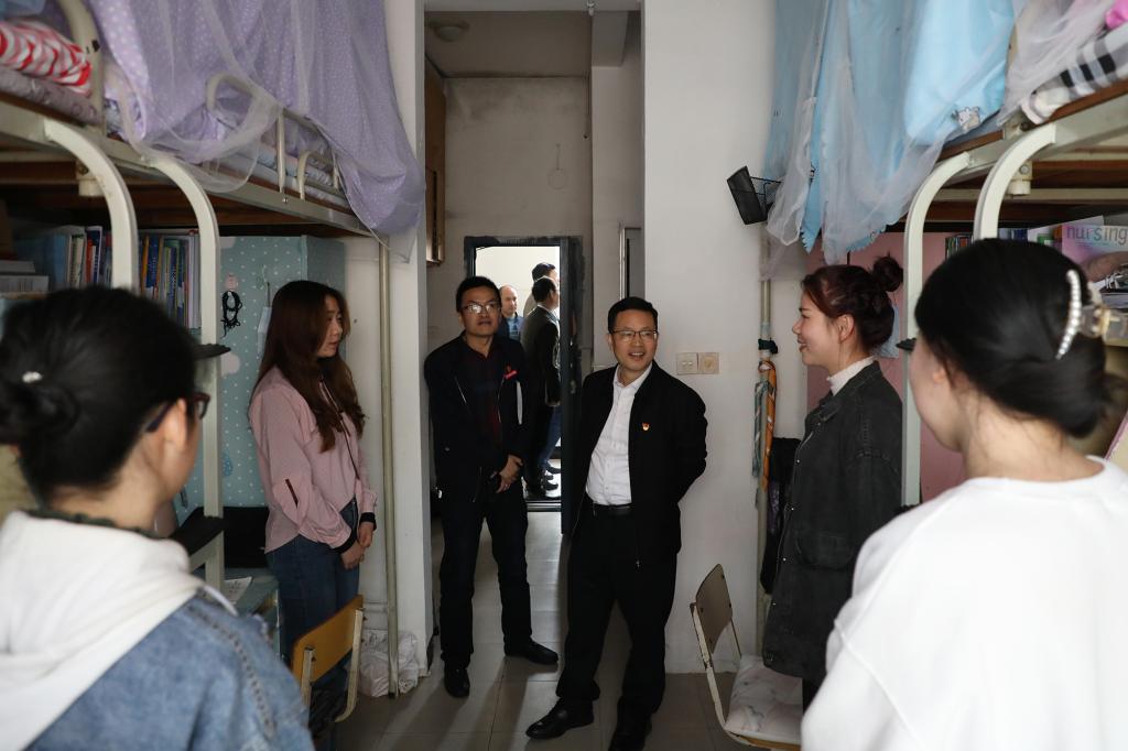 座谈会结束,邓弘书记一行又来到7栋学生宿舍,与同学们亲切交流。“你来自哪里呀?”“平时课余生活充实吗?”“在学业规划上有什么打算?”……一连串暖心的问题,立刻拉近邓弘书记与学生间的距离。每到一个宿舍,他还叮嘱随行人员要提高认识、压实责任,以细致入微的态度做好学生工作,及时解决学生学习、生活中遇到的困难和问题,帮助学生更好地成长成才。