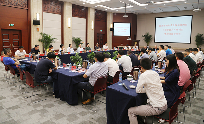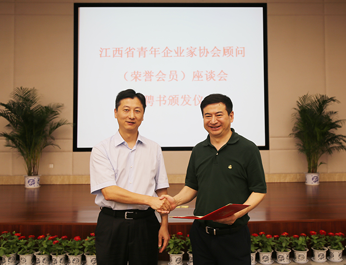 江科网讯(实习记者 何强江)6月22日上午,江西省青年企业家协会(以下简称青企协)顾问(荣誉会员)座谈会暨聘书颁发仪式在我校行政楼南一楼第一会议厅举行。团省委党组副书记、团省委副书记马健,团省委党组成员、团省委副书记廖良生,学校董事长于果出席。30余名顾问委员会顾问参加座谈。会议由团省委青年发展部部长刘雅琴主持。
