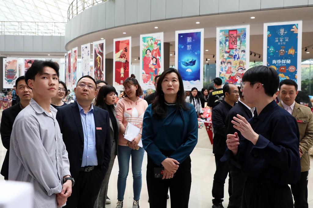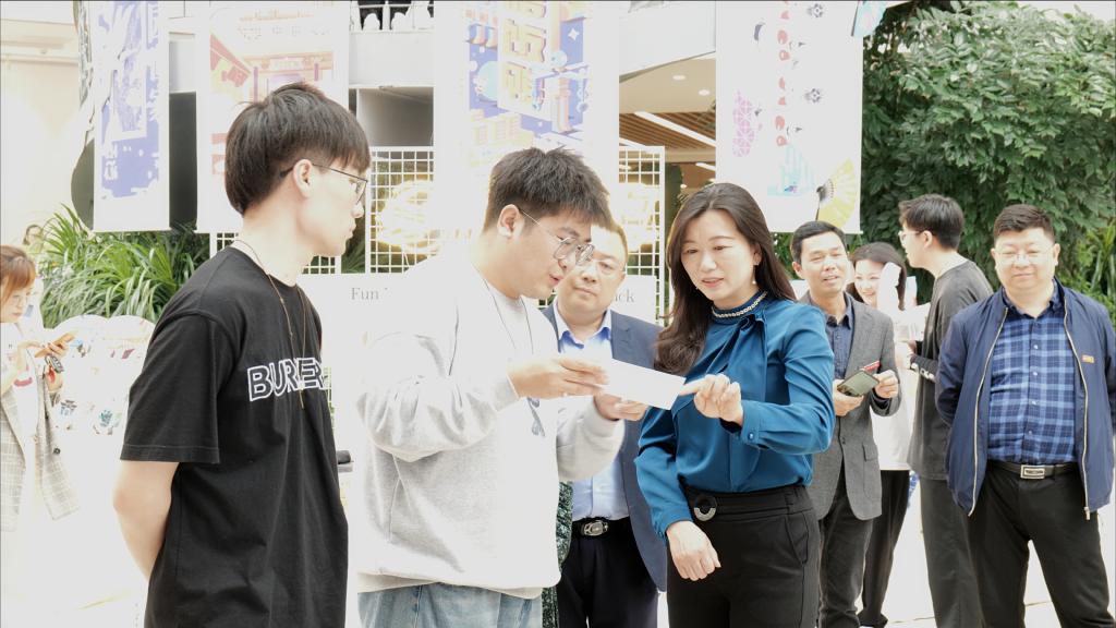 校领导在各展位前驻足观看,详细听取同学们对文创思路、设计理念的讲解,对同学们的艺术理念和设计成果给予了高度的肯定。张海涛校长指出,学校鼓励学生进行丰富的创新实践,提高自身创新能力;相关部门应提供技术指导和政策支持,增强学生的专利保护意识,鼓励其进行专利申报,保护自己的劳动成果。同学们要发扬自强不息、求真务实的精神,大胆创新,敢于突破,在未来的职业发展道路上取得耀眼成绩。