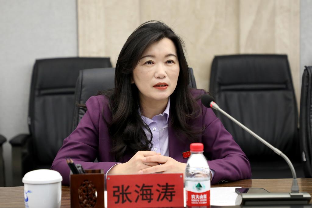 张海涛校长代表学校对刘吉清经理一行表示欢迎,并介绍了江科的发展历程及现状,重点介绍了学校教育教学、人才培养、产教融合等具体情况。她表示希望通过此次会谈,进一步推动双方在人才培养、订单教育等领域的深入合作。