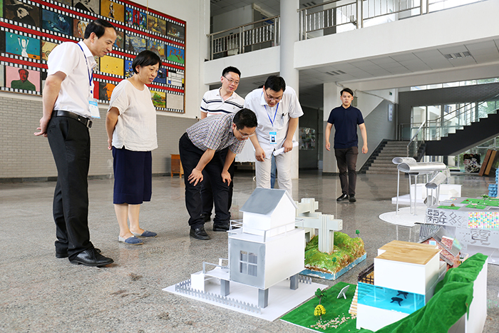 在艺术设计学院一楼大厅,胡剑锋一行在该学院院长汪静的陪同下,参观了《建筑模型设计与制作》课程学生期末考试作品展。据悉,所有展出作品均由学生纯手工制作,作品以学校建筑物为原型进行二次创作。胡剑锋看完作品展后,肯定了学生新颖的设计创新意识和实践创作能力。当得知部份作品是由创新班学生完成时,他要求艺术学院要进一步加大创新班培养力度,强化学生创新意识及学生实践动手能力的培养。