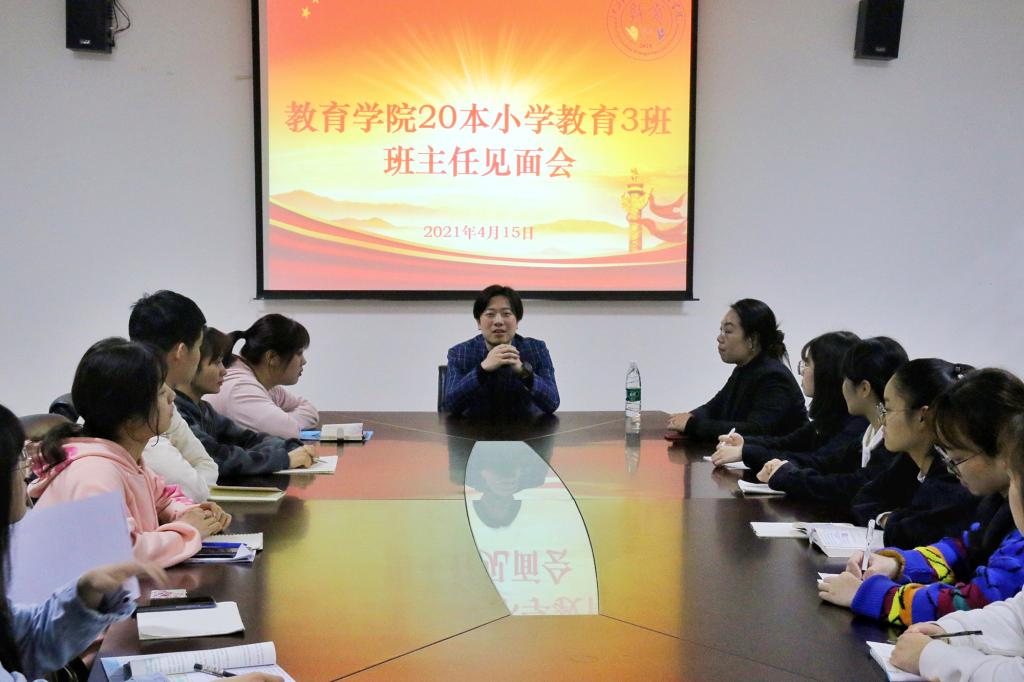 4月15日,李玮副校长以班主任身份与教育学院20本小学教育3班的学生在J10-217教室举行班主任见面会。会上,李玮副校长从小学教育专业教师必备技能学习、大学四年生活该如何度过、大学四年学习基本规划安排等三个角度与同学们进行交流谈心。他希望同学们保持积极向上的学习态度,丰富自己的课余生活,掌握基本的教师知识和技能素养,坚定对小学教育的理想,激发对专业知识的热爱,在追求梦想的路上不懈奋斗。