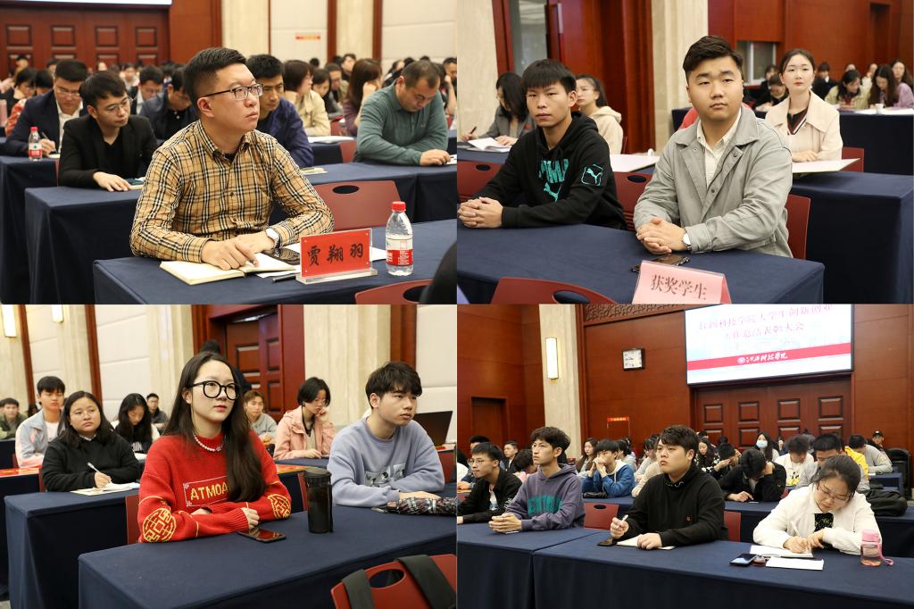 校(党)办、教务处、科研处、人事处、财务处、招就处、学工处、督导处、总务处、理学部、图文信息中心、思政部、体育部、团委(双创办)等职能部门负责人,各学院院长、副院长、科研秘书、团委书记、师生代表,获奖师生代表及双创办全体成员参加会议。