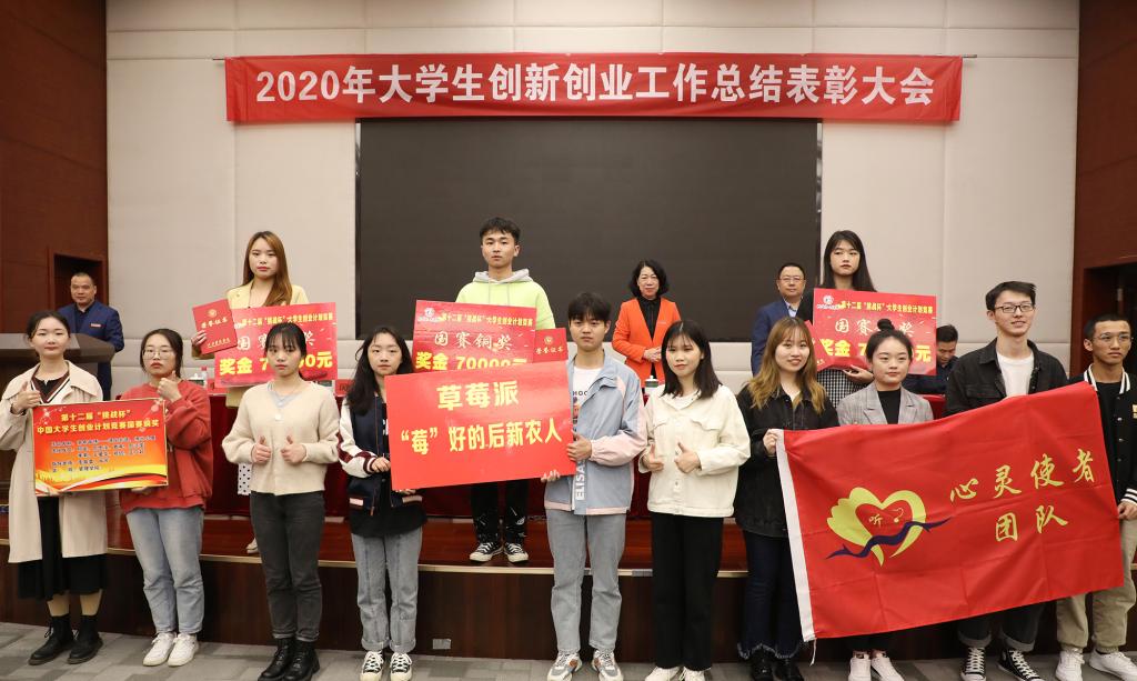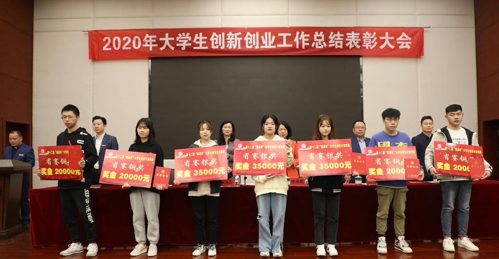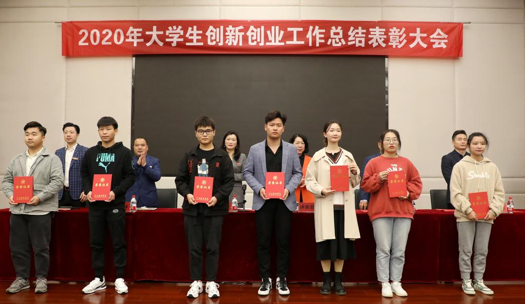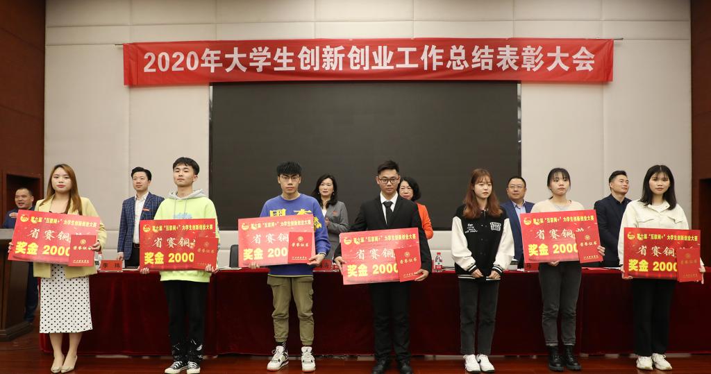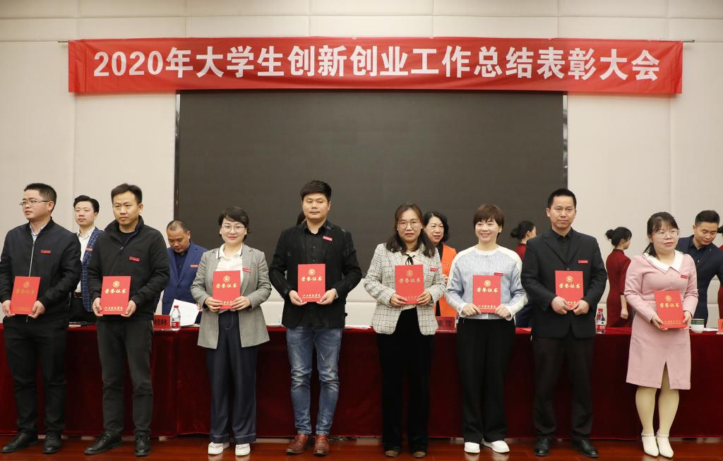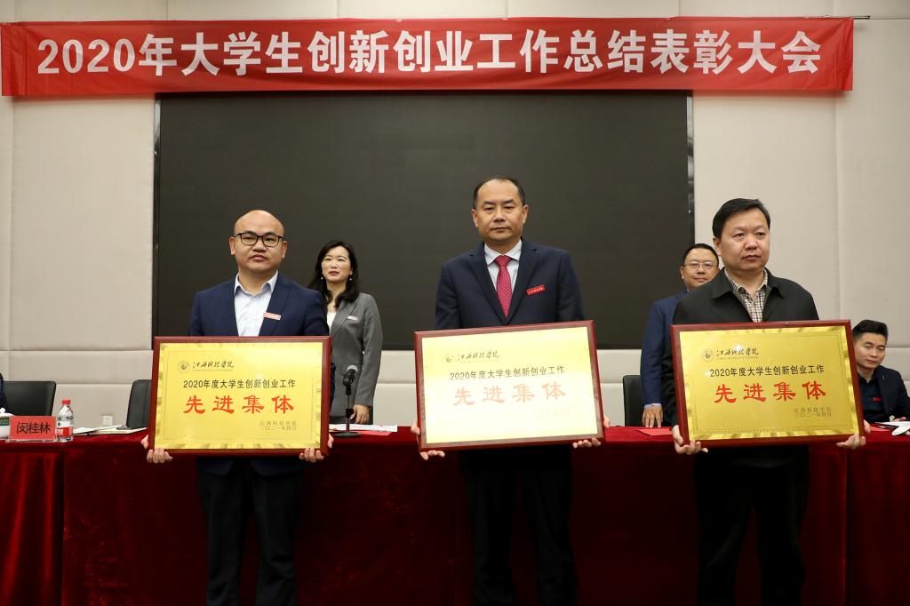 林素君副校长宣读《关于表彰2020年度大学生创新创业工作先进集体和优秀个人的决定》。校领导为获表彰的先进集体和优秀个人颁奖。