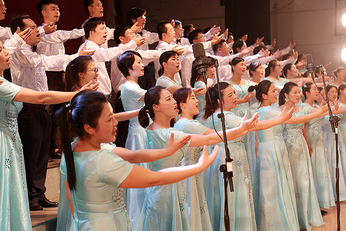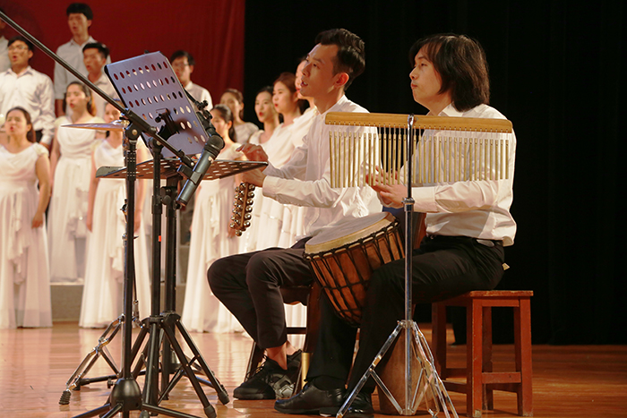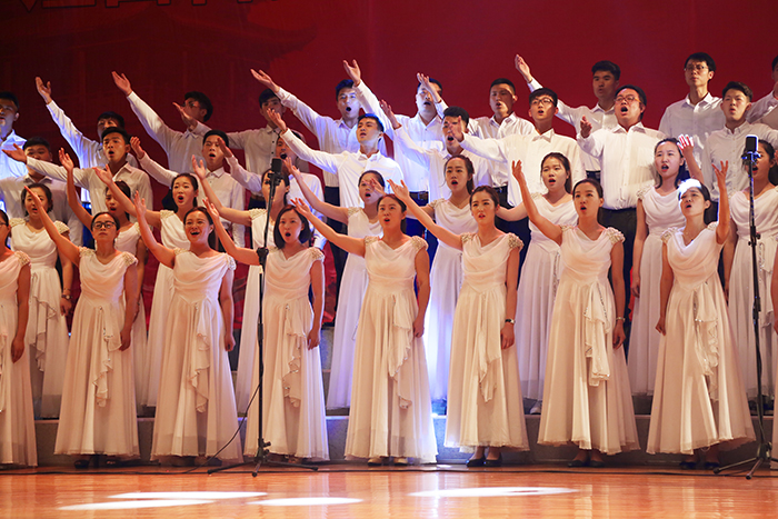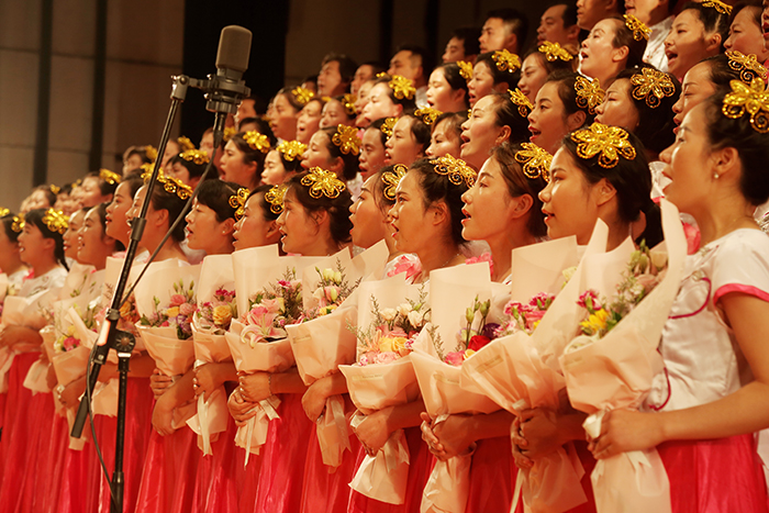 由校领导,各职能部门、各教学单位负责人及教职工共计900余人组成的十四支参赛队伍和音乐舞蹈学院合唱表演团依次登台表演,共同奏响一场歌唱祖国的视听盛宴。
