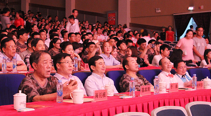 根副书记和胡剑锋、林素君、黄辉玲、周万华、万哨凯、张海涛副校长,广州白云学院校领导同我校师生代表共计1500余人观摩了比赛。