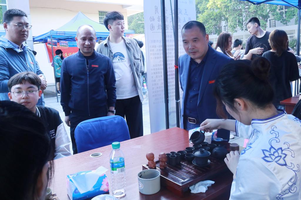 活动中,校党委副书记、副校长闵桂林在学工处负责人的陪同下来到现场,和同学们一同感受传统文化的魅力。闵桂林副校长与参与活动的社团学生亲切交流,鼓励同学们更好的做好相关社团工作,对社团的发展方向提出建设性意见。