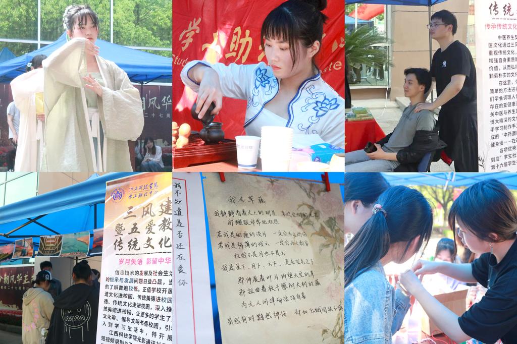活动以江科学子新时代的“君子六艺(礼艺、乐艺、射艺、御艺、书艺、术艺)”为主题开展,古风舞蹈、茶艺展示、中国结编织、影像艺术、文创作品、书法绘画、中医养生等,通过游园会的形式,让同学们在轻松的氛围中感受并亲身体验传统文化,本次活动也将2021年全国高校传统文化知识竞答活动很好的融入进来。