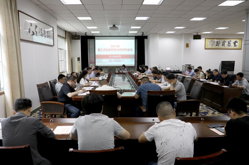 会上,保卫处(综治办)处长谢秋明通报当前综治及安全稳定工作情况。相关学院、部门汇报工作情况,对存在的问题作表态发言,并相互探讨。