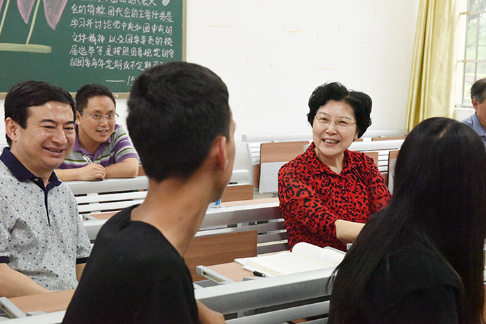 根副书记、胡剑锋副校长等的陪同下,黄小华来到J13—107教室,听取了思政部杨燕红老师主讲的《毛泽东思想和中国特色社会主义理论体系概论》,并在课后与师生代表座谈。