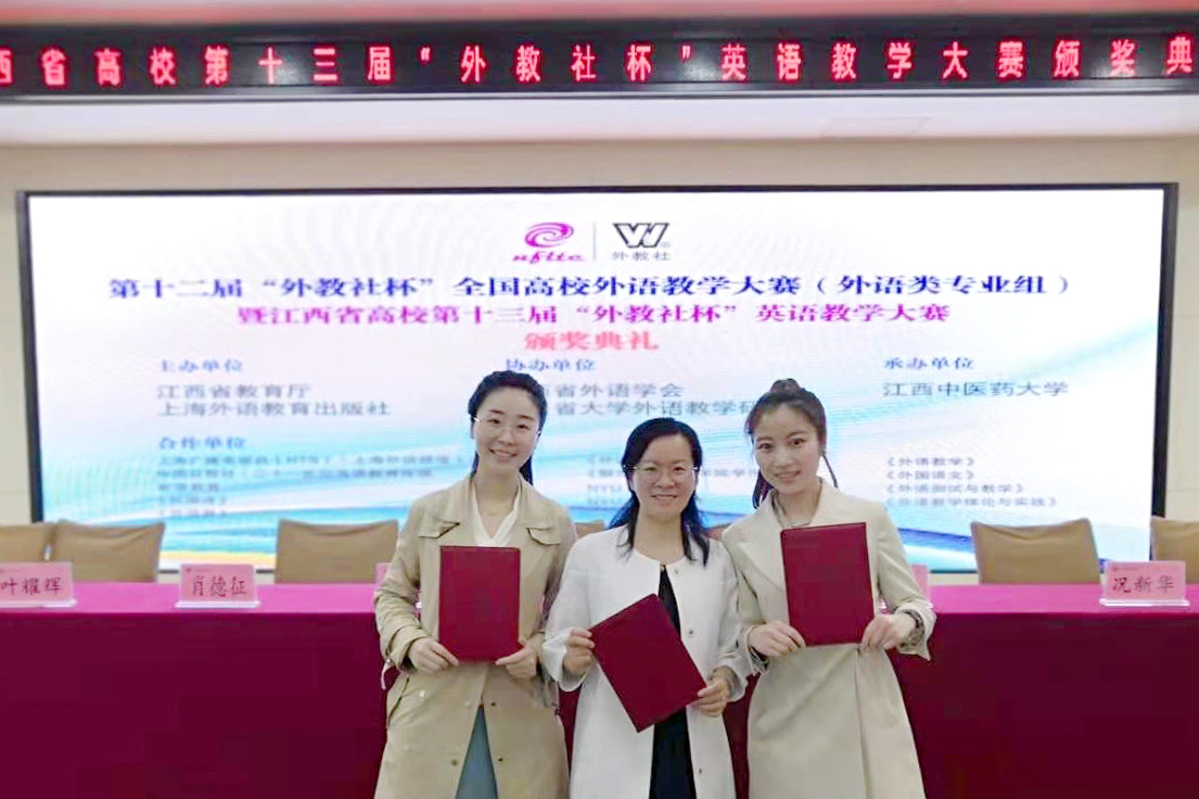 江科网讯(通讯员 曹穗蓉)5月23日,第十二届“外教社杯”全国高校外语教学大赛(外语类专业组)暨江西省高校第十三届“外教社杯”英语教学大赛落幕。本次大赛共有来自全省40所高校100多名教师参赛。我校外国语(国际教育)学院王楚君和刘雨桐老师分别荣获英专组二等奖和商英组二等奖,江西科技学院荣获团体三等奖,外国语(国际教育)学院副院长李君荣获指导老师一等奖,取得该赛事成绩的重大突破。