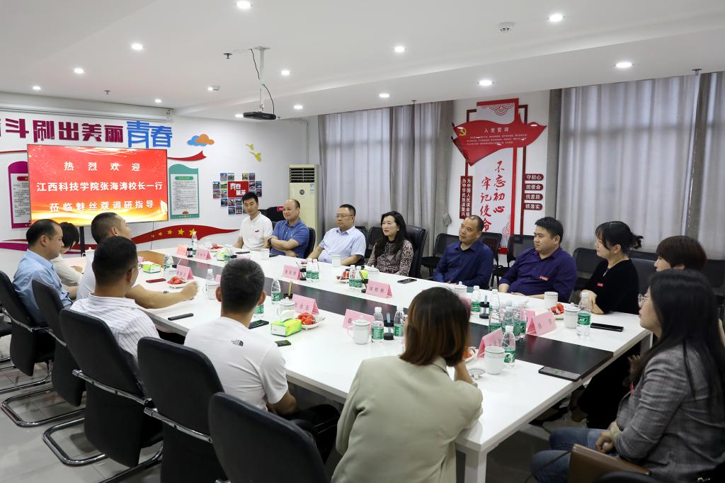 江科网讯(通讯员 严哲斯 记者 何强江)5月25日下午,张海涛校长带队走访05级江期胜校友企业——魅丝蔻集团和05级张永乐校友企业——思泓集团,并与校友亲切座谈。副校长闵桂林、马勇,校(党)办、招就处、开发处等职能部门负责人随同走访。江西校友会副会长兼秘书长刘娅妮校友、副会长黄新中校友、副秘书长何梓轩校友参加座谈会。