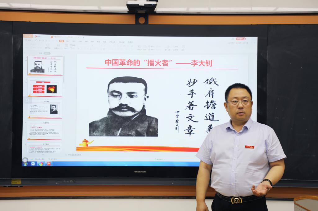 6月8日中午,马勇副校长来到S1-203教室,以《“铁肩担道义,妙手著文章”——革命先驱李大钊》为主题,将党史学习教育融入思政课堂,从人物简介、突出贡献以及人物评价三方面给20本汽服1班的同学们介绍了为真理而奋斗,勇担革命重任的先驱青年人物李大钊。课后,马勇副校长与同学们在学生食堂共进午餐,亲切交流。在同学们聊到自己学习、生活上的困惑时,他认真倾听,结合自己的人生经历给予贴心的意见及建议。饭后,马勇副校长与同学们一起来到宿舍,仔细了解同学们的住宿条件、生活习惯、安全卫生等情况,并嘱咐同学们在大学生活中仍要以学习为重,注意劳逸结合。