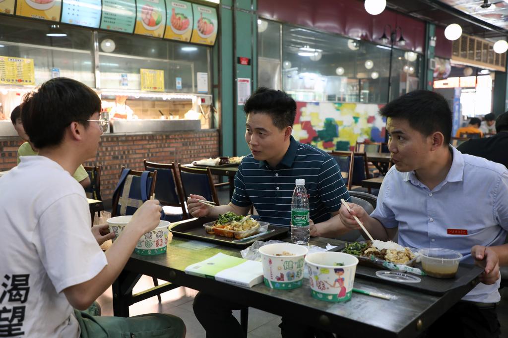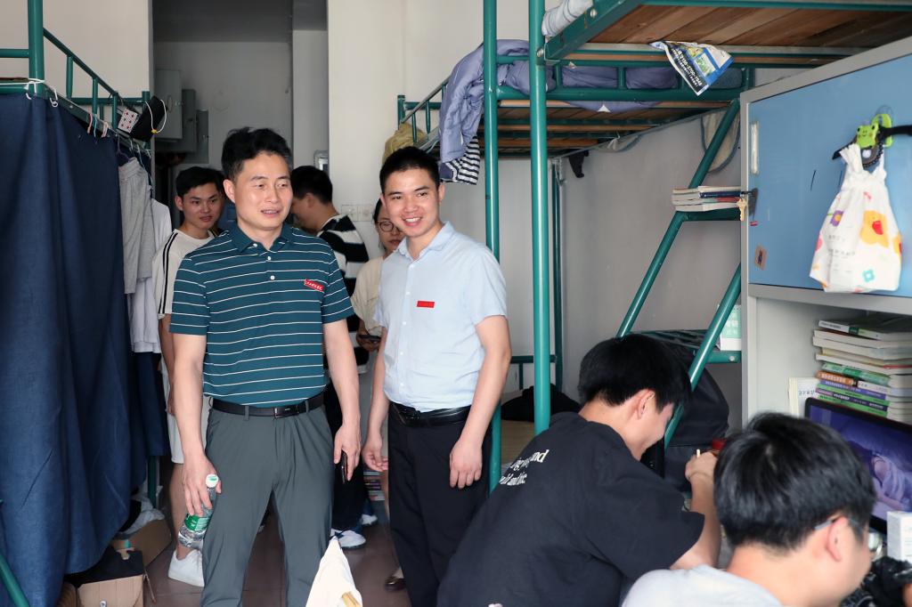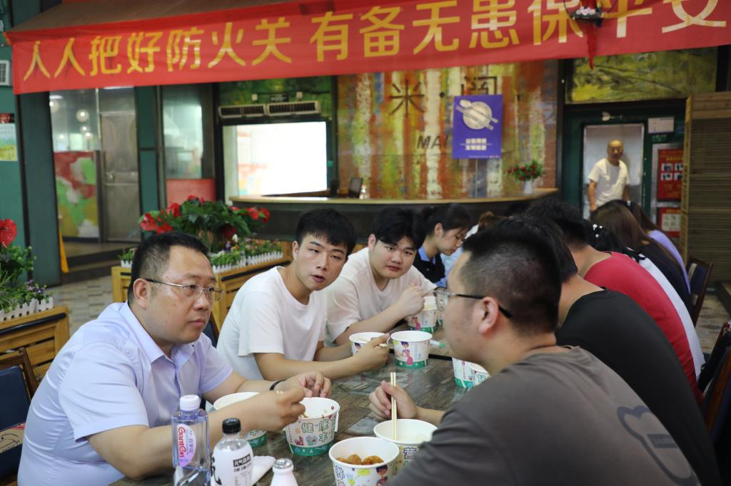 当天上午,J8栋403教室内气氛异常热烈,智能工程学院18本机械设计4班的同学们争先与他们的“新朋友”——副校长周冰冰谈天说地。周冰冰副校长在课上紧紧围绕党史学习教育这一主题,结合当下的国际环境,深入分析了坚持中国共产党领导的重要性和必要性。他勉励同学们要发扬党的优良传统和作风,肩负历史使命,立大志、明大德、成大才、担大任,成为合格的社会主义建设者和接班人。中午时分,周冰冰副校长来到庐山餐厅,和同学们一起端盘买饭、边吃边聊。“食堂的饭菜合口味吗?你们觉得价格怎么样?”“课余时间有兼职吗?”他在餐桌上同大家拉开家常,关心同学们的生活状况。饭后,他又来到宿舍,了解同学们对宿舍设施、后勤管理等方面的意见和建议,并叮嘱同学们在学习、生活上有什么问题可以及时反馈,学校相关部门一定及时处理,给同学们营造贴心、舒适的环境。