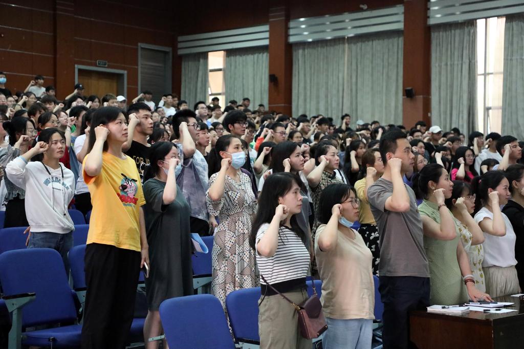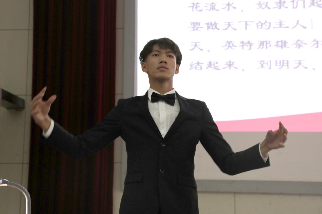 开班典礼上,在音乐舞蹈学院郭仡鑫同学的指挥下,全体起立唱《国际歌》。智能工程学院孙岚同学代表全体学员发言。艺术设计学院陈科维同学带领全体学员宣誓。
