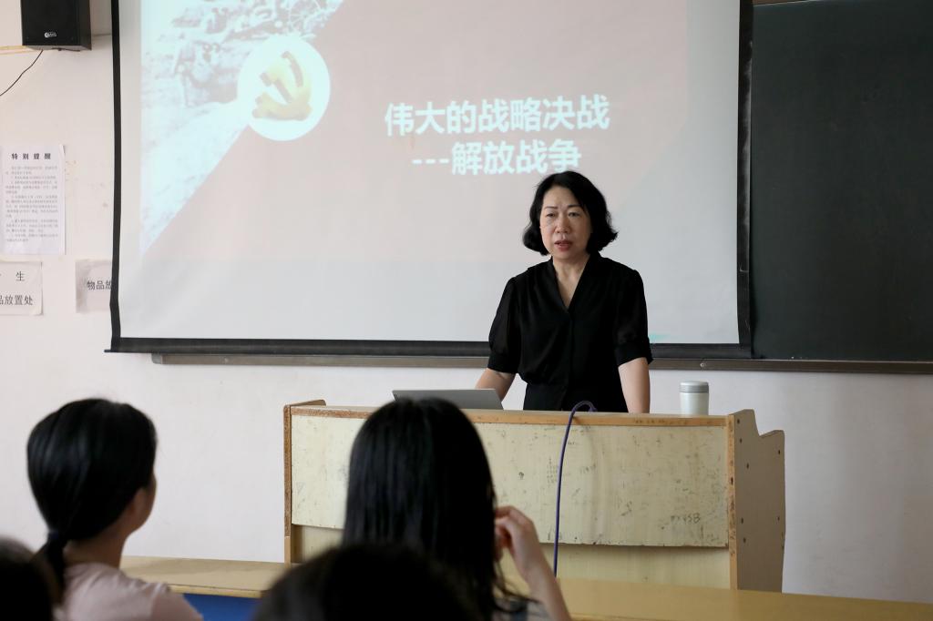 林素君副校长以“伟大的战略决策——解放战争”为主题,从重庆谈判争取和平民主、奋起自卫将革命进行到底、第二条战线声势浩大、人民军队战略防御转入战略进攻、人民民主统一战线与协商民主、伟大的战略决战与全国解放、进京“赶考”、绘制新中国的蓝图等八个方面,通过实际数据、鲜活事例、客观对比等方式为同学们上了一堂精彩生动的党课(思政课)。