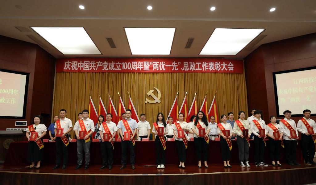 江科网讯(记者 陈佩璇)6月29日上午,江西科技学院庆祝中国共产党成立100周年暨“两优一先”和思政工作表彰大会在行政南一楼第一会议室隆重召开。董事长于果、校党委书记邓弘等在家校领导和校党委委员出席。大会由校党委副书记、副校长黄辉玲主持。