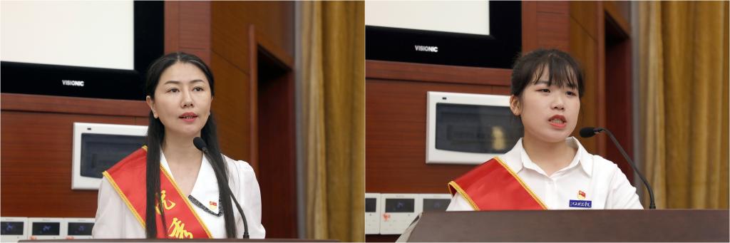 会上,校党委副书记、副校长闵桂林宣读了《中共江西科技学院委员会<关于表彰2020-2021学年优秀共产党员、优秀党务工作者和先进基层党组织的决定>》和《江西科技学院<关于表彰2019-2020年度大学生思想政治教育工作先进集体和先进个人的决定>》。与会领导为获奖集体和个人颁奖。优秀共产党员代表、江科附中教师邓文婷,外国语(国际教育)学院学生叶金梅,优秀党务工作者代表、教育学院党总支书记路丕军,先进基层党组织代表、保卫处处长谢秋明,思政工作先进集体代表、财经学院党总支书记周小丰分别作了发言。