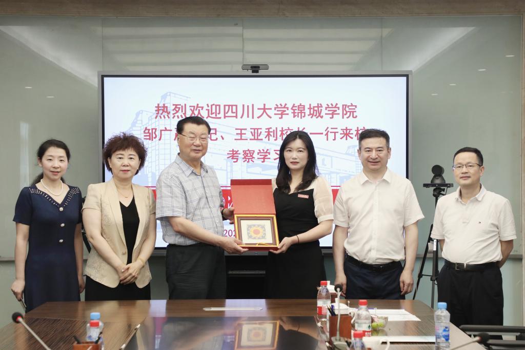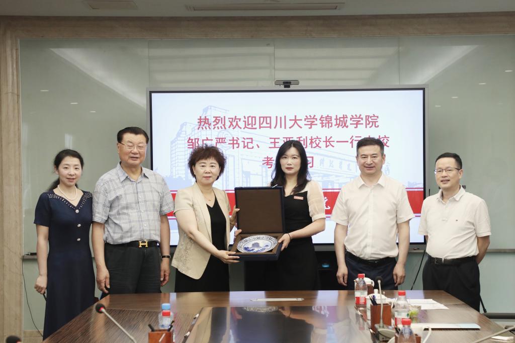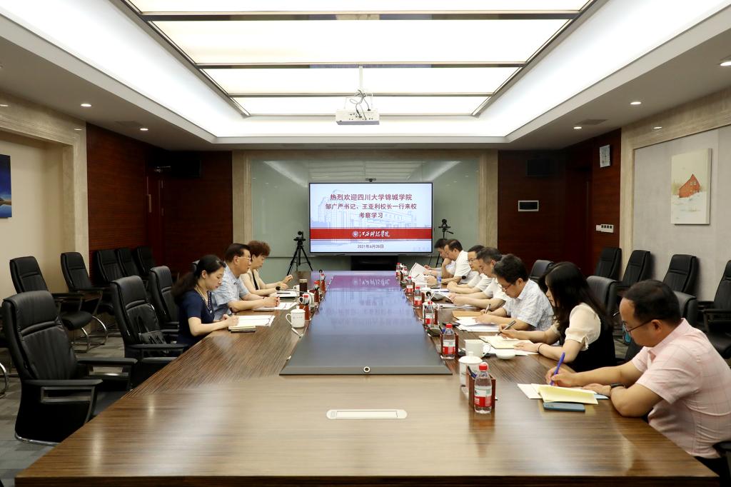 邹广严书记一行对我校在办学实践中取得的丰硕成果给予高度赞赏。同时,他对四川大学锦城学院的相关情况进行介绍。他表示,四川大学锦城学院与江西科技学院同属民办高校,两校的办学情况有很多相似之处,希望两校在未来的发展道路上进一步密切交流和学习,共同提高、共同进步,为社会输送更多优秀人才,为我国民办高等教育事业创造新的辉煌。