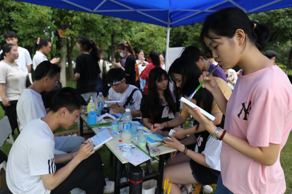 本次游园活动由61个学生社团共同打造,涵盖思想政治类、学术科技类、创新创业类、文化体育类、志愿公益类、自律互助类等类别。各个学生社团精心准备了别具特色的风采展示。书法协会以书法的形式展示成员手抄的党章段落、习近平总书记系列重要讲话等内容;学生社团联合会组织了党史知识竞赛、红色诗词接龙、听红歌识曲等趣味活动……各社团将党史学习教育和社团活动紧密结合,让党史学习教育进一步“活起来”。