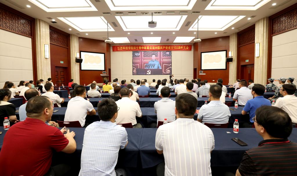 副校长陈石俊表示:“今天上午收看了中央在北京隆重举行的庆祝中国共产党成立100周年大会,聆听了习近平总书记重要讲话,作为一名有着30多年党龄的老党员,心潮澎湃,为我们党的伟大光荣倍感自豪。百年奋斗,中国共产党始终践行为中华民族谋复兴的初心使命,团结带领中国人民创造了新民主主义革命的伟大成就,创造了社会主义革命和建设的伟大成就,创造了改革开放和社会主义现代化建设的伟大成就,创造了新时代中国特色社会主义的伟大成就。这些成就,来自于浴血奋战、百折不挠,来自于自力更生、发愤图强,来自于解放思想、锐意取进,来自于自信自强、守正创新。在这一系列奋斗征程的背后,包含着百年大党永葆初心、矢志创新、自我革新的创造千秋伟业的巨能密码。我们纪念伟大的中国共产党百年华诞,就要把习近平总书记深刻阐述的‘坚持真理、坚守理想,践行初心、担当使命,对党忠诚、不负人民’的伟大建党精神,在‘第二个百年奋斗目标’的新征程中进一步继承好、发扬好;把永葆初心、矢志创新、自我革新的‘巨能密码’与立德树人的办学宗旨结合好,在‘办一所好大学’的奋斗路上,再创江西科技学院的新辉煌!”
