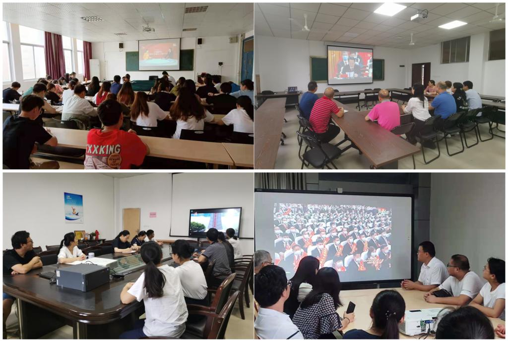 学校各学院党总支理论学习中心组、党委直属党支部和机关党支部组织全体党员、广大教职工,各班级组织青年学生通过网络、电视、微博、微信等途径收听收看了庆祝大会,刘奇书记在庆祝大会上的讲话在师生中引发热议。