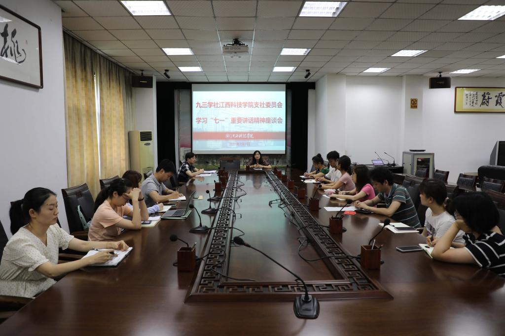 江科网讯(通讯员 吴琴 记者 何钰馨)7月7日下午,九三学社江西科技学院支社在行政北一楼举行学习习近平总书记“七一”重要讲话精神座谈会。校长、九三学社江西科技学院支社主委张海涛出席并讲话。副校长、九三学社江西科技学院支社副主委李玮主持会议。校支社全体社员参加。