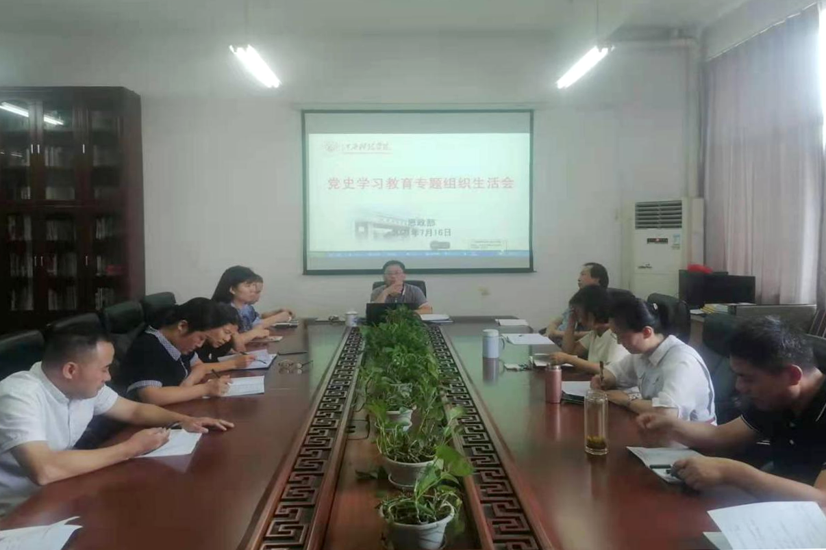 7月16日上午,思政部党支部召开党史学习教育专题组织生活会。会议主要围绕四个方面的内容展开:一是学习习近平总书记“七一”重要讲话精神,交流心得体会;二是对照党史学习教育指定阅读书目,检查理论阅读情况;三是对照党史学习教育目标要求,查摆差距和不足;四是对照党员模范人物的先进事迹,谈为师生办的实事好事。