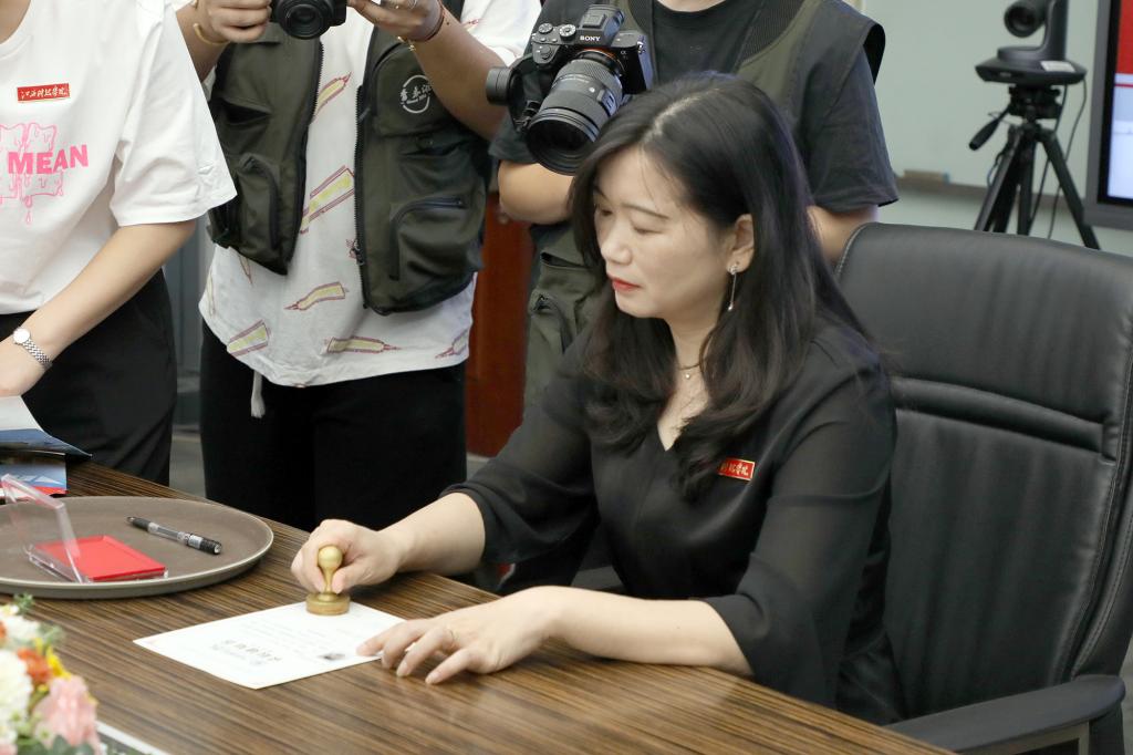 在首发录取通知书仪式上,张海涛校长从数千封通知书中抽取了上海艺术类考生王一帆、北京文理类考生马骁两名幸运同学,亲手为他们的录取通知书签发校长章并装袋。鉴于近期全国部分省市已进入汛期,各地暴雨频发,多地遭受洪涝灾害影响,张海涛校长转达了于果董事长对受灾学子的关注与牵挂,并表示学校将通过于果志愿扶贫助残奖优基金和启动临时困难补助申请工作,点对点地将资助金发放给学生,全力帮助在特殊时期因洪涝灾害而产生突发困难的学生渡过难关,确保不让任何一个学生因受灾而影响学习。