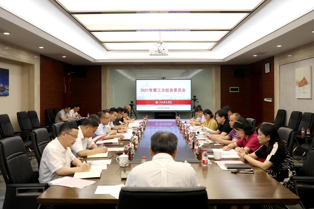 江科网讯(记者 何强江)7月26日下午,我校在行政南一楼第三会议室召开2021年第3次校务委员会会议,专题研究学校第二轮本科专业综合评价工作。董事长于果、党委书记邓弘、校长张海涛等全体在校校务委员出席会议,督导处负责人列席会议。