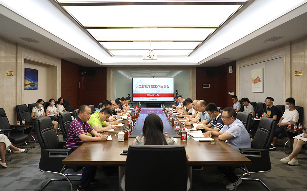 为了更好地完成工作对接和教育教学资源的衔接,部署安排人工智能学院的各项工作,8月9日下午,校长张海涛在行政南一楼第三会议室主持召开人工智能学院成立工作调度会。副校长闵桂林、马勇出席会议。校(党)办、财务处、人事处、开发处、教务处、团委、总务处、现代教育技术中心等部门负责人,人工智能学院、信息工程学院院长、副院长、秘书,以及有关专业课任教师、辅导员、实验员等与会。