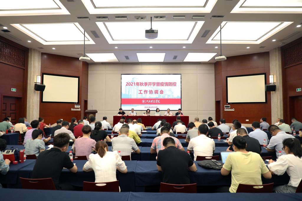 江科网讯(记者 陈佩璇)8月23日上午,我校在行政南楼第一会议室召开2021年秋季开学暨疫情防控工作协调会。副校长林素君,党委副书记、副校长黄辉玲、闵桂林,副校长马勇、李玮、周冰冰出席会议。相关职能部门负责人,各学院院长、学工副院长、教学副院长,学工秘书、教学秘书参加会议。会议由林素君副校长主持。